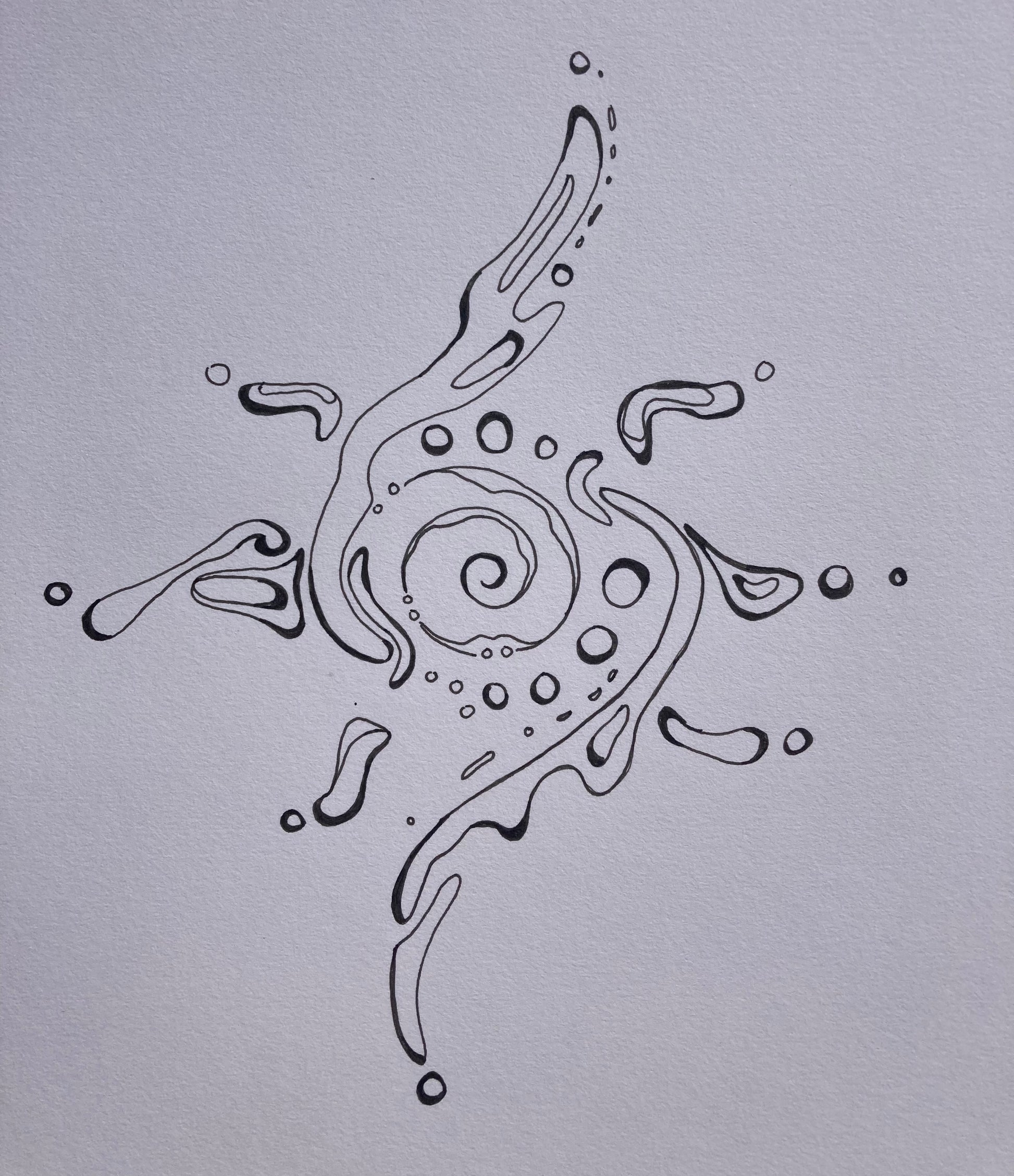 This is a tribute to the beautiful sun and ocean. This design was created to mimic the way water moves representing the flowing nature of life. The spiral inside represents expansion and growth. With the sun representing a love for nature and the outdoors.