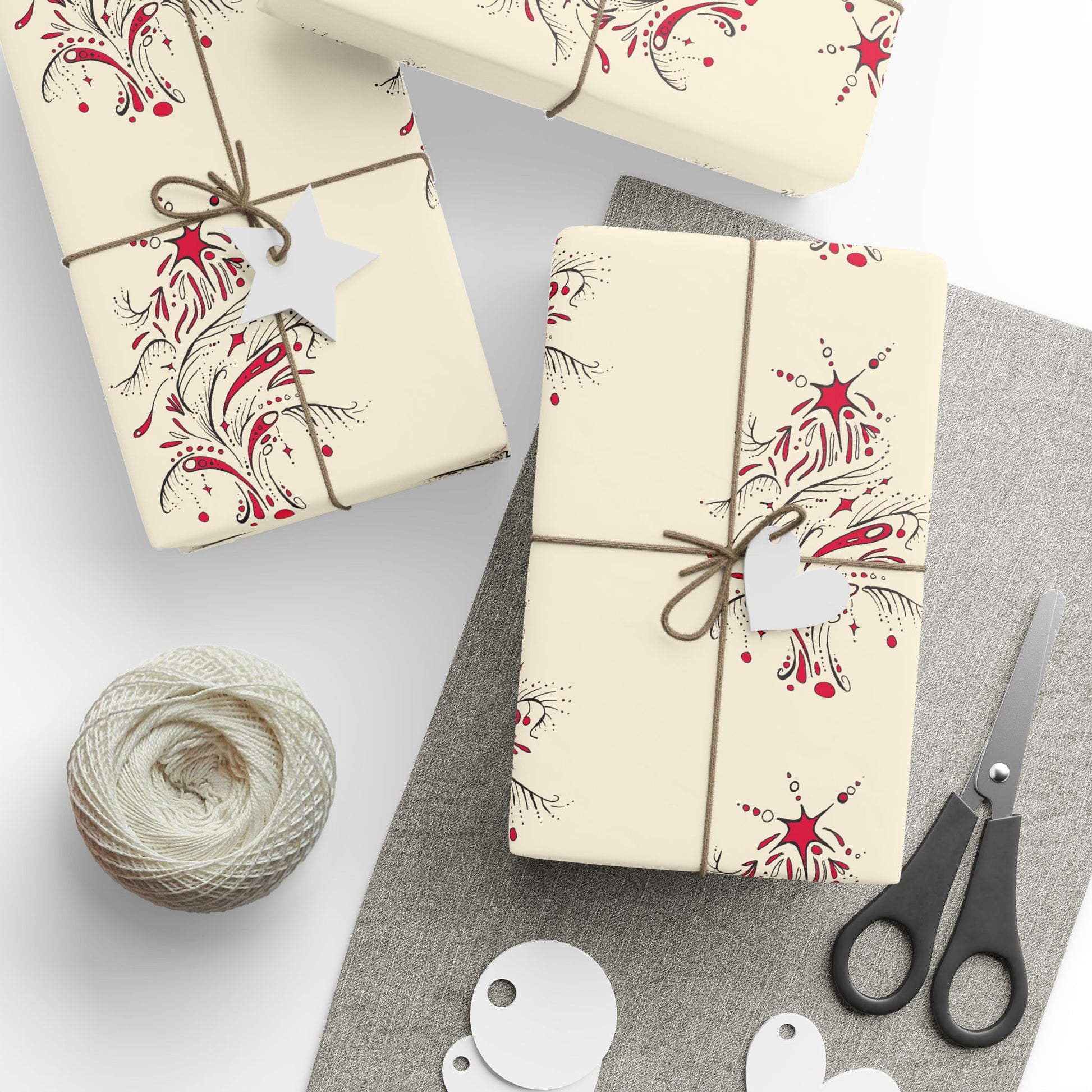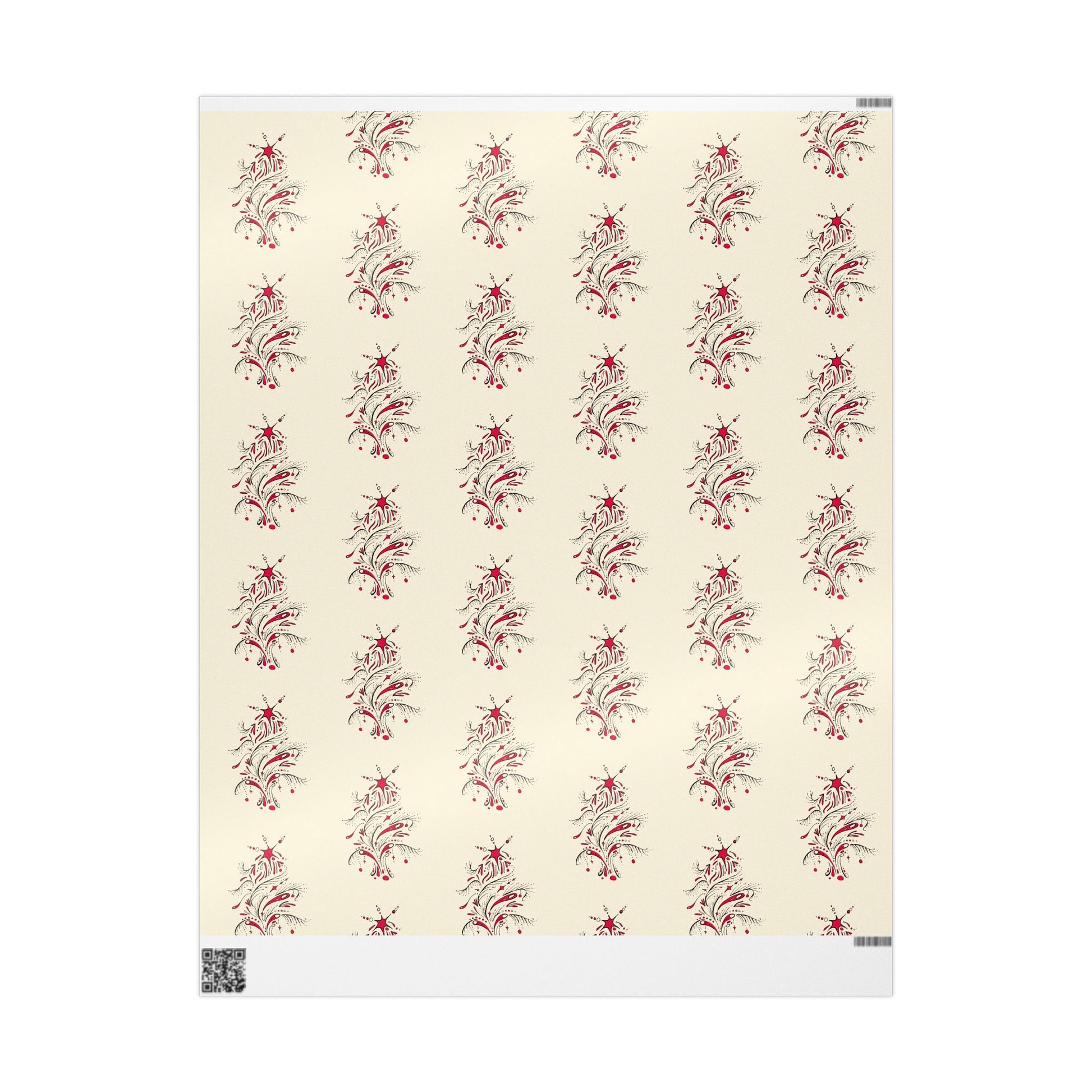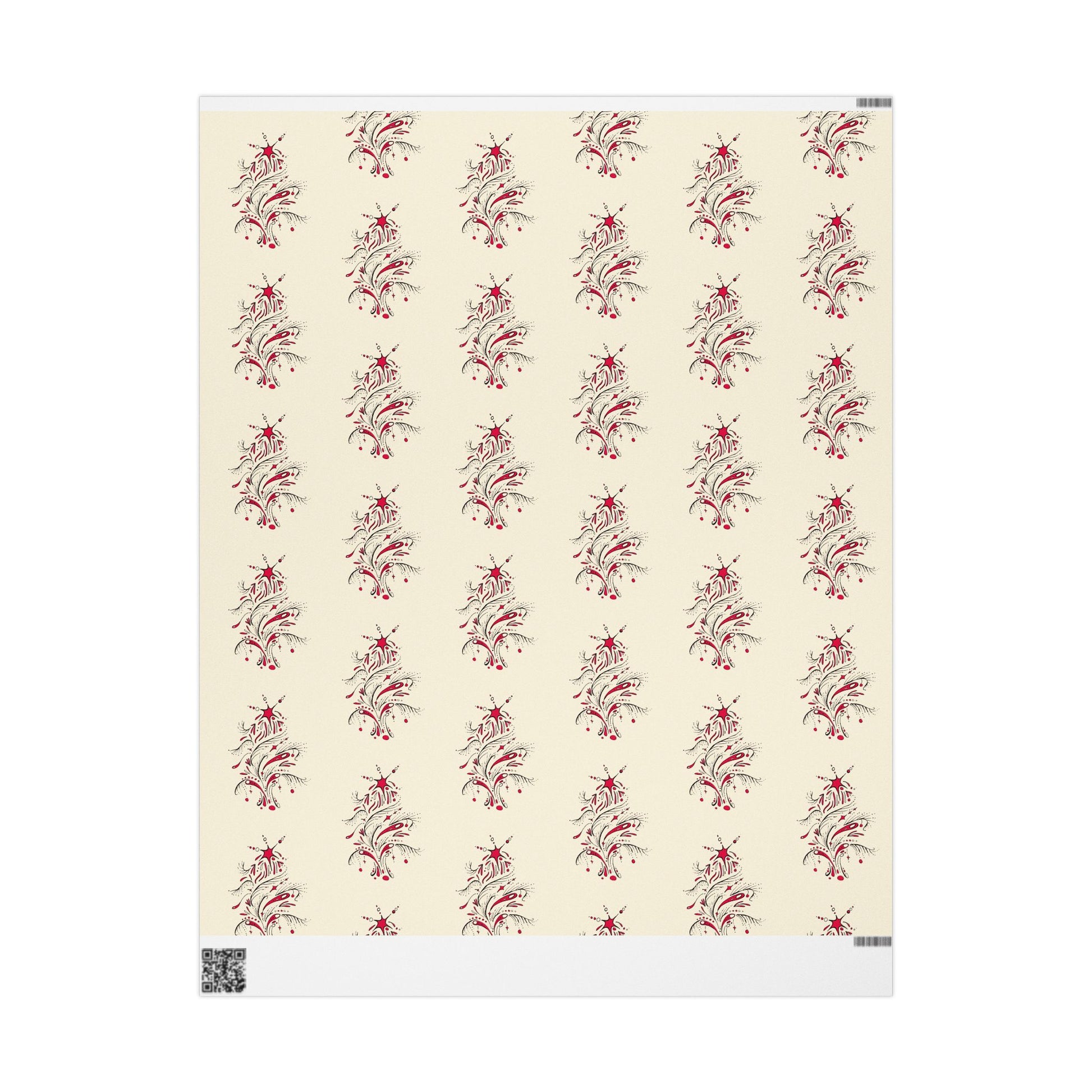 Cream-colored wrapping paper patterned with a vintage-style Christmas tree design. Each tree was hand-drawn and then digitally transformed, creating a nostalgic feeling for anyone who cherishes the little details.