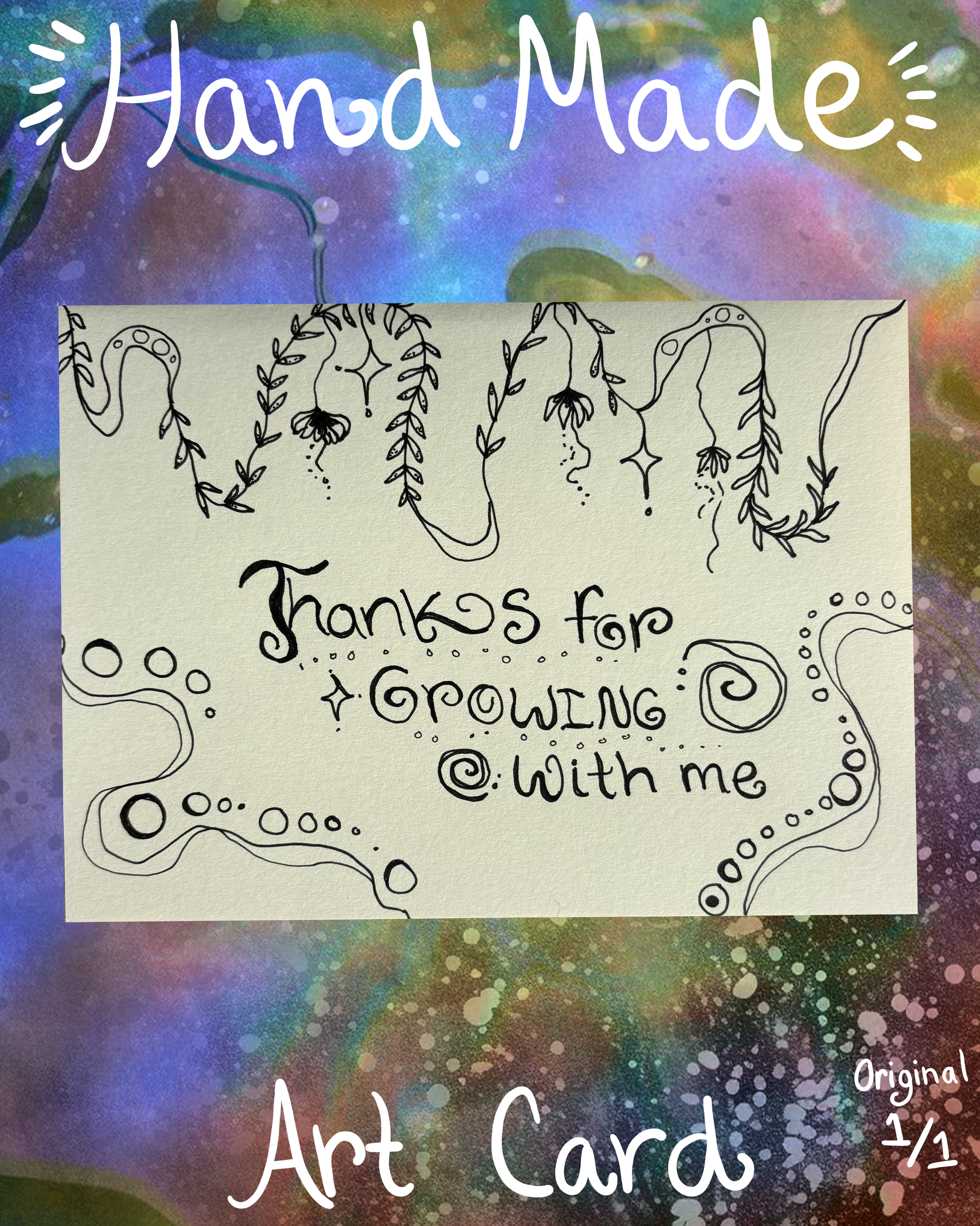 Each card is an original hand-drawn piece by the creator of Sol Grown, signed and dated on the back for authenticity. Every design carries a piece of heart and intention, created to remind others that love, and thoughtfulness still matter in the small things.
