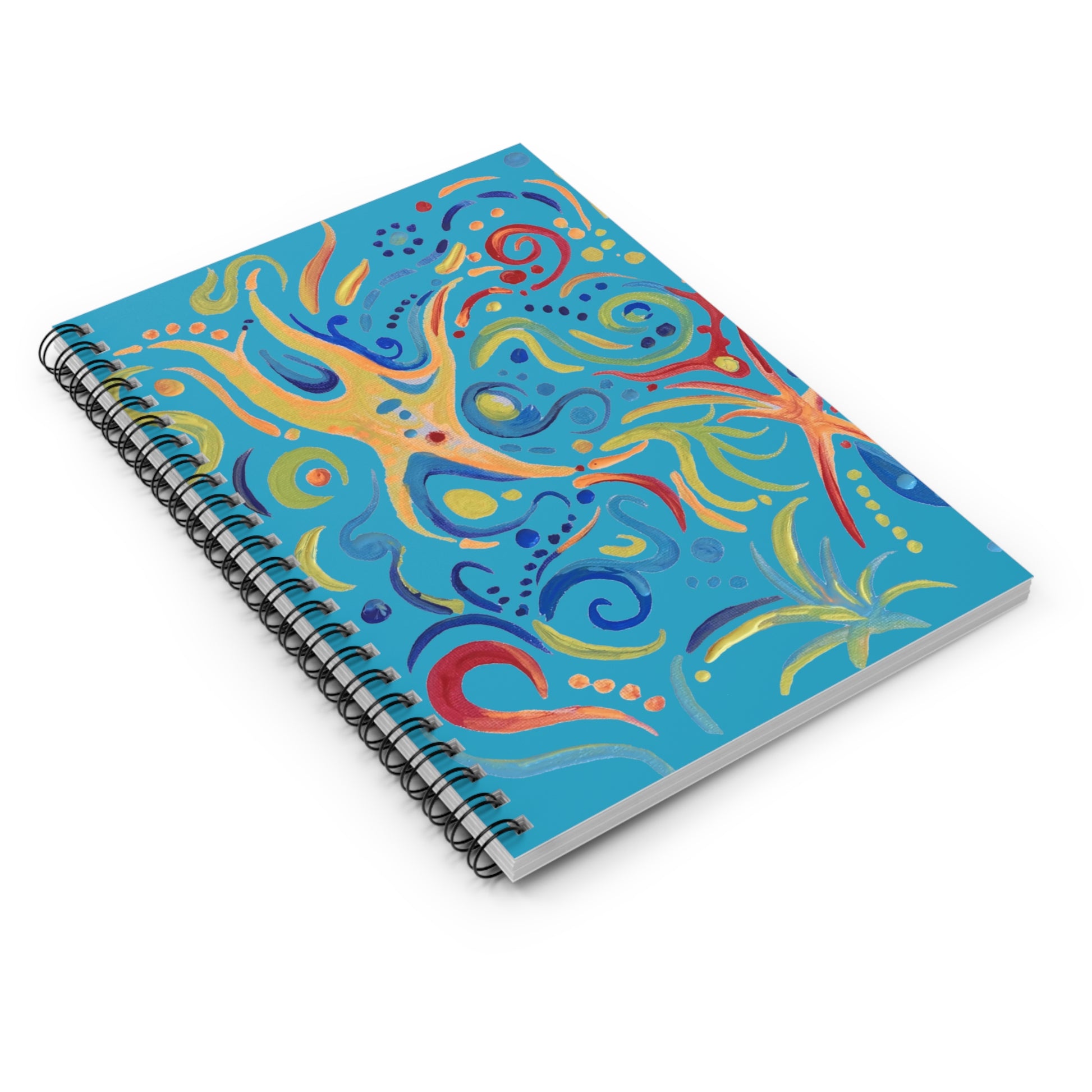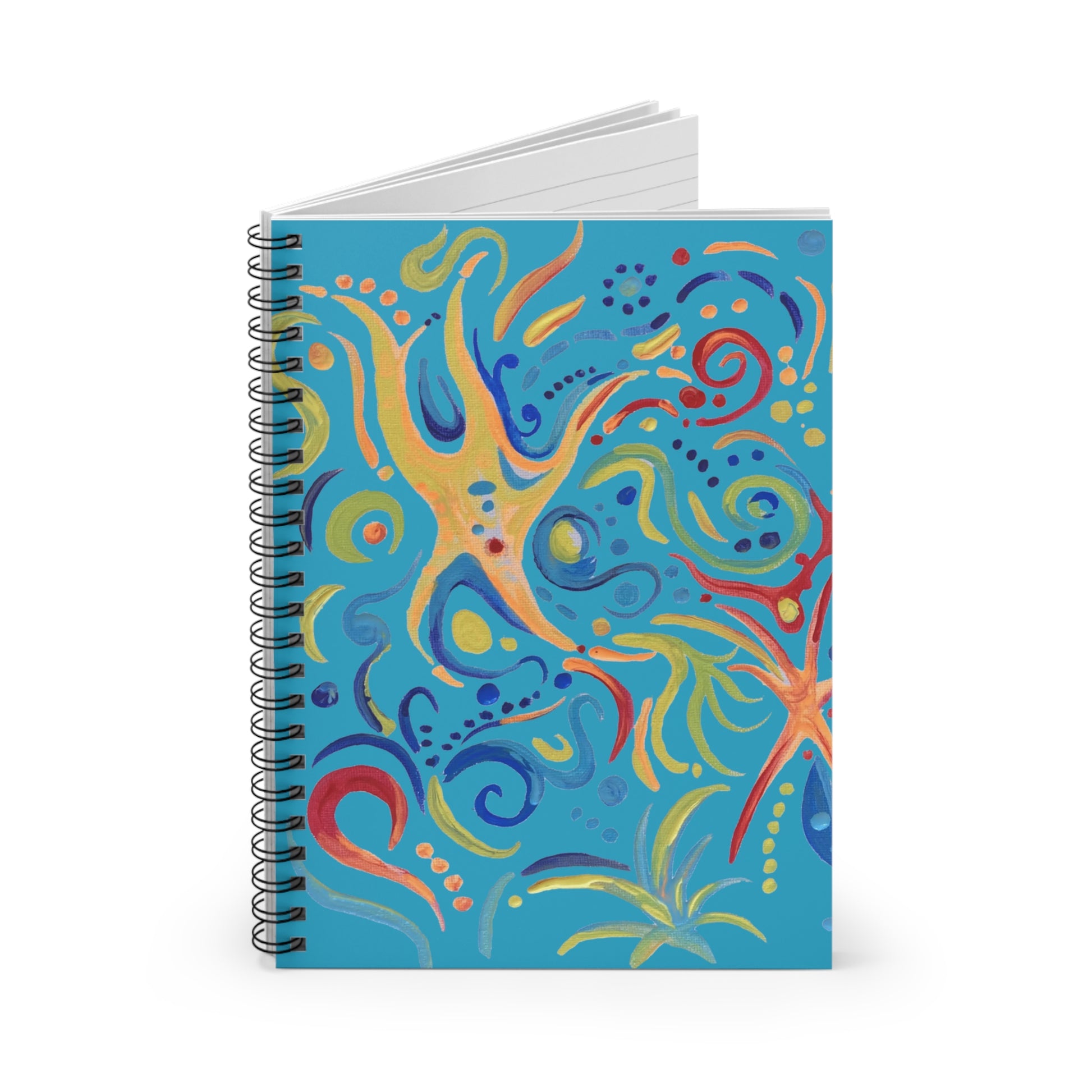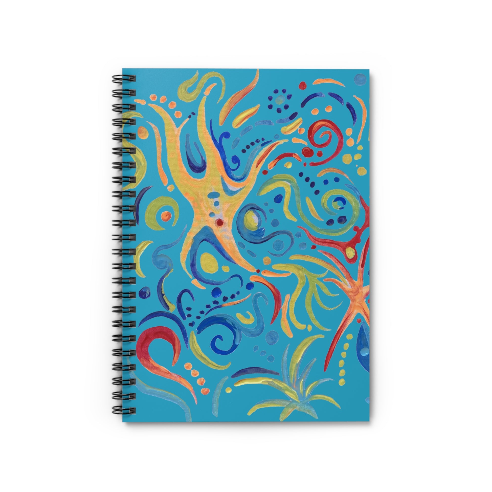 Made to feel as if you’re drifting under the sea and soaring among the stars with this vibrant spiral notebook. Designed for dreamers and thinkers, its colorful front cover and sturdy metal spiral binding create the perfect blend of beauty and function. Inside, ruled 90gsm pages are ideal for mindful journaling, creative prompts, or personal notes. Compact at 6" x 8", it fits effortlessly in your bag, so inspiration is always within reach. Whether for school, a thoughtful gift, or your own creative sanctuary, this notebook brings cosmic wonder and ocean magic to every page.